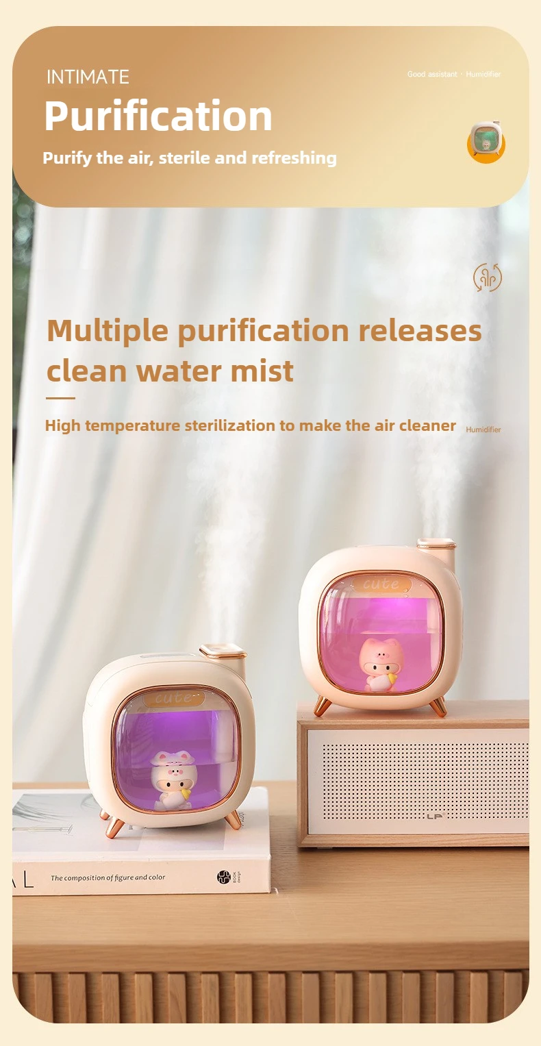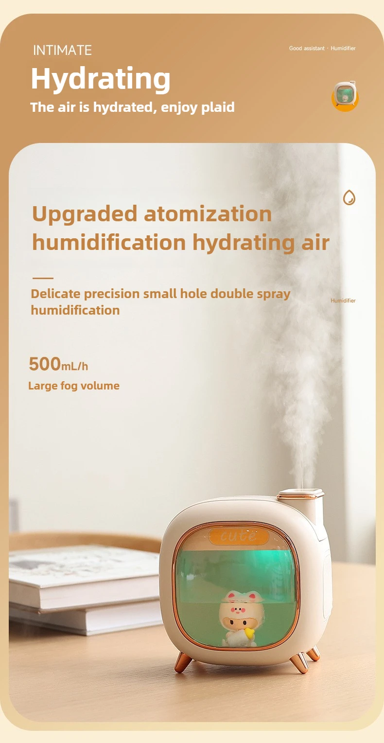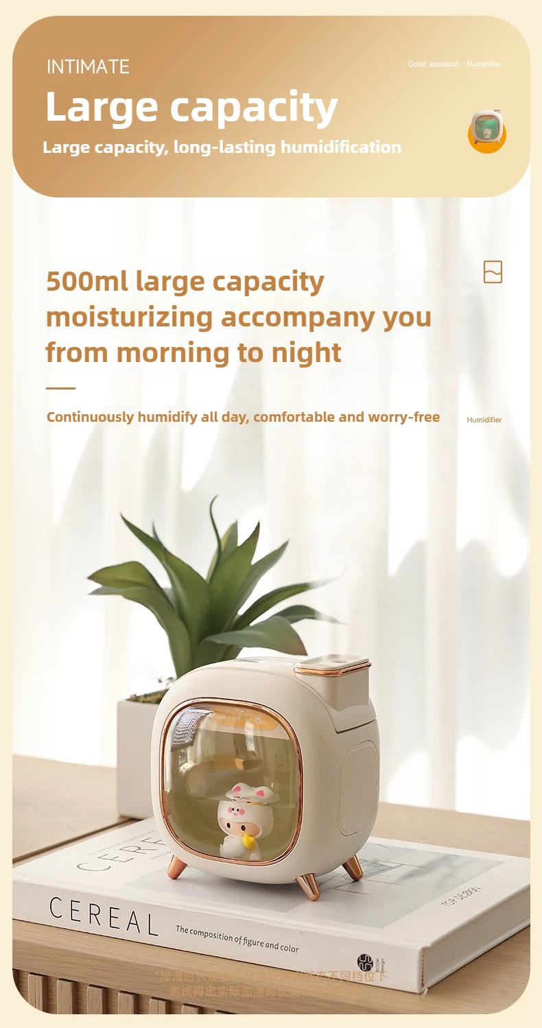Humidificateur d'air ultrasonique poupées de dessin animé, diffuseur d'huile essentielle et d'arôme de grande capacité de 500ML, veilleuses respiratoires colorées USB