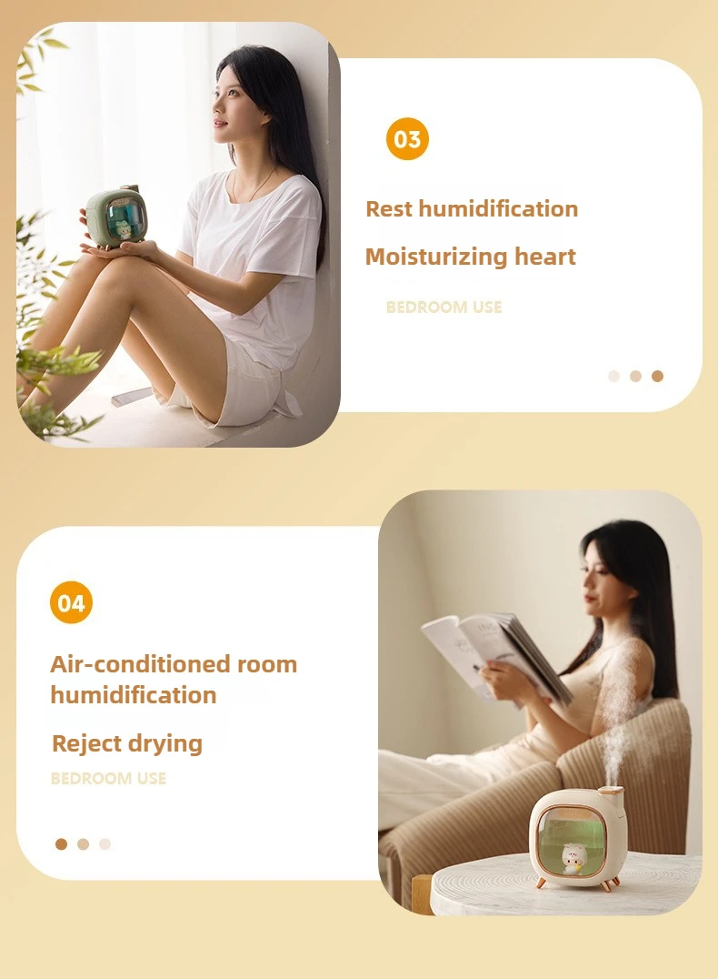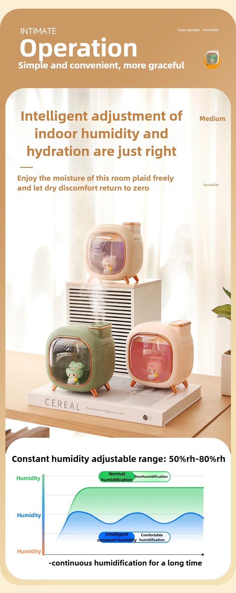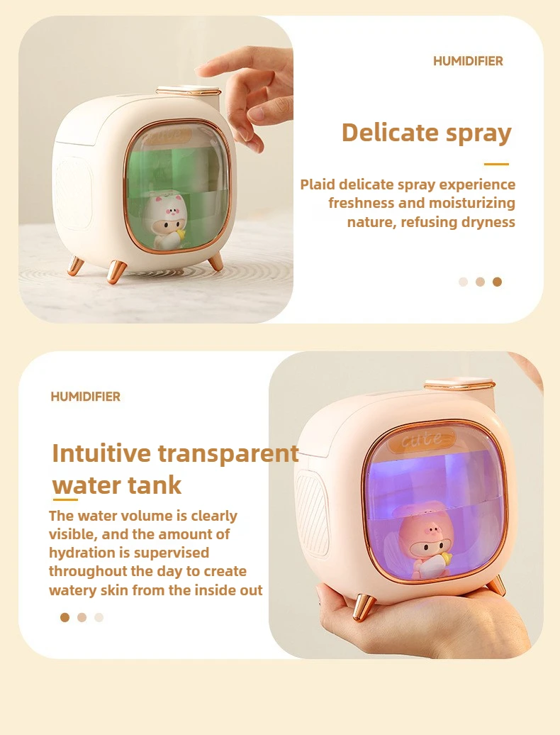 Humidificateur d'air ultrasonique poupées de dessin animé, diffuseur d'huile essentielle et d'arôme de grande capacité de 500ML, veilleuses respiratoires colorées USB